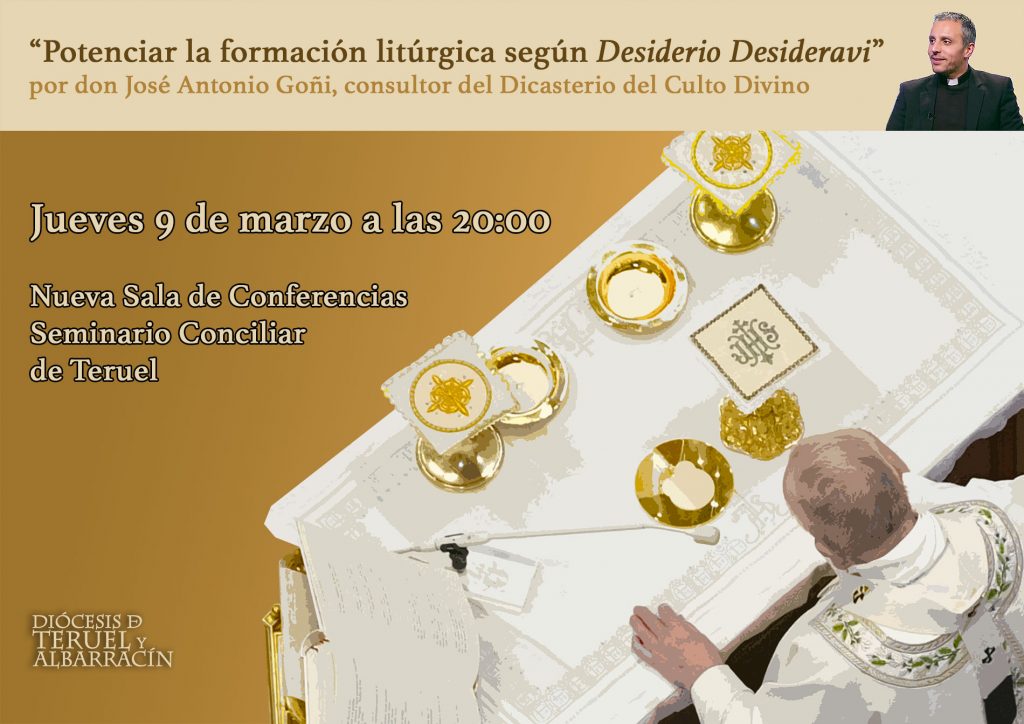Aprovechando que don José Antonio Goñi, sacerdote de la diócesis de Pamplona y consultor del Dicasterio del Culto Divino, va a estar en nuestra diócesis para la formación permanente para sacerdotes del viernes 10 de marzo, pronunciará, el día anterior, una conferencia abierta titulada «Potenciar la formación litúrgica según Desiderio Desideravi”